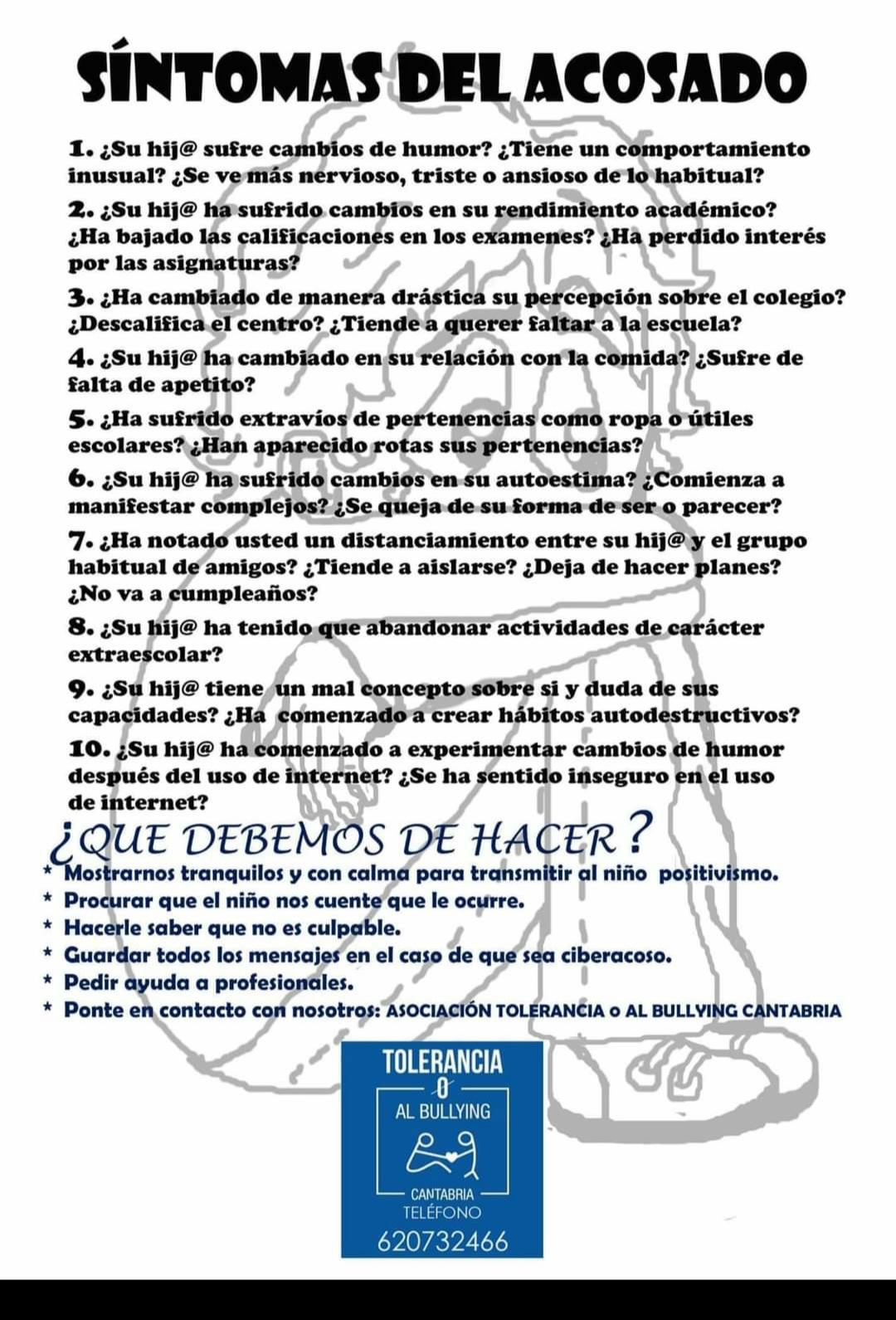 Inicio Infórmate sobre el Acoso Escolar Ante cualquier duda, Contacta Sé parte de la Solución, Colabora PRESENTACIÓN DE "CALCETINES QUE ROMPEN EL SILENCIO CONTRA EL ACOSO" Continúa "En sus Palabras" -- Paula Fernández Viaña Ya disponemos de nuestra ya tradicional Lotería de Navidad! Si quieres tus participaciones (4€ jugados y 1€ de donación solidaria), no dudes en ponerte en contacto con nosotros!No te quedes sin jugar!! Mucha suerte! 💙 En esta historia jugamos un gran papel… no pasemos página 💙 Últimas noticias e iniciativas Actos contra el Acoso Escolar en Santander 7 junio, 20227 junio, 2022 Share this…FacebookTwitterGoogleWhatsappEmail Premios 2022 Asociación Tolerancia 0 al Bullying Cantabria 7 junio, 20227 junio, 2022 Share this…FacebookTwitterGoogleWhatsappEmail Actos contra el Acoso Escolar en Torrelavega 7 junio, 20227 junio, 2022 Share this…FacebookTwitterGoogleWhatsappEmail Acto de Presentación «Calcetines que rompen el silencio contra el Acoso 2021» 14 octubre, 202114 octubre, 2021 Acto de Presentación «Calcetines que rompen el silencio contra el Acoso 2021» Share this…FacebookTwitterGoogleWhatsappEmail Instituciones y empresas con las que colaboramos Share this...FacebookTwitterGoogleWhatsappEmail